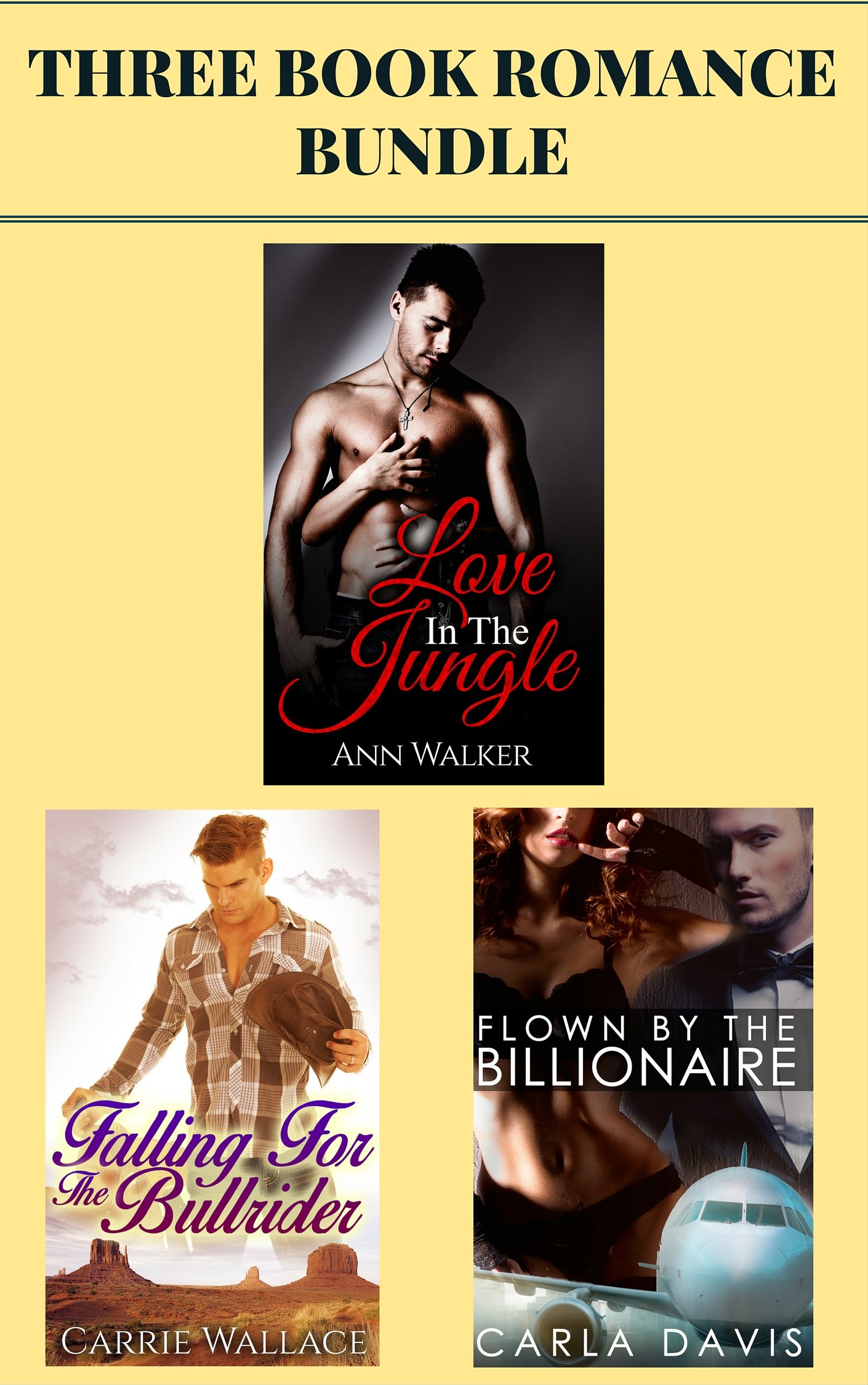 3 Book Romance Bundle: "Love in the Jungle" & "Falling for the Bull Rider" & "Flown by the Billionaire"