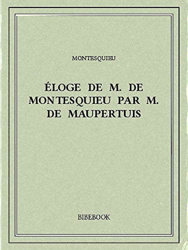 Éloge de M. De Montesquieu par M. De Maupertuis (French Edition)