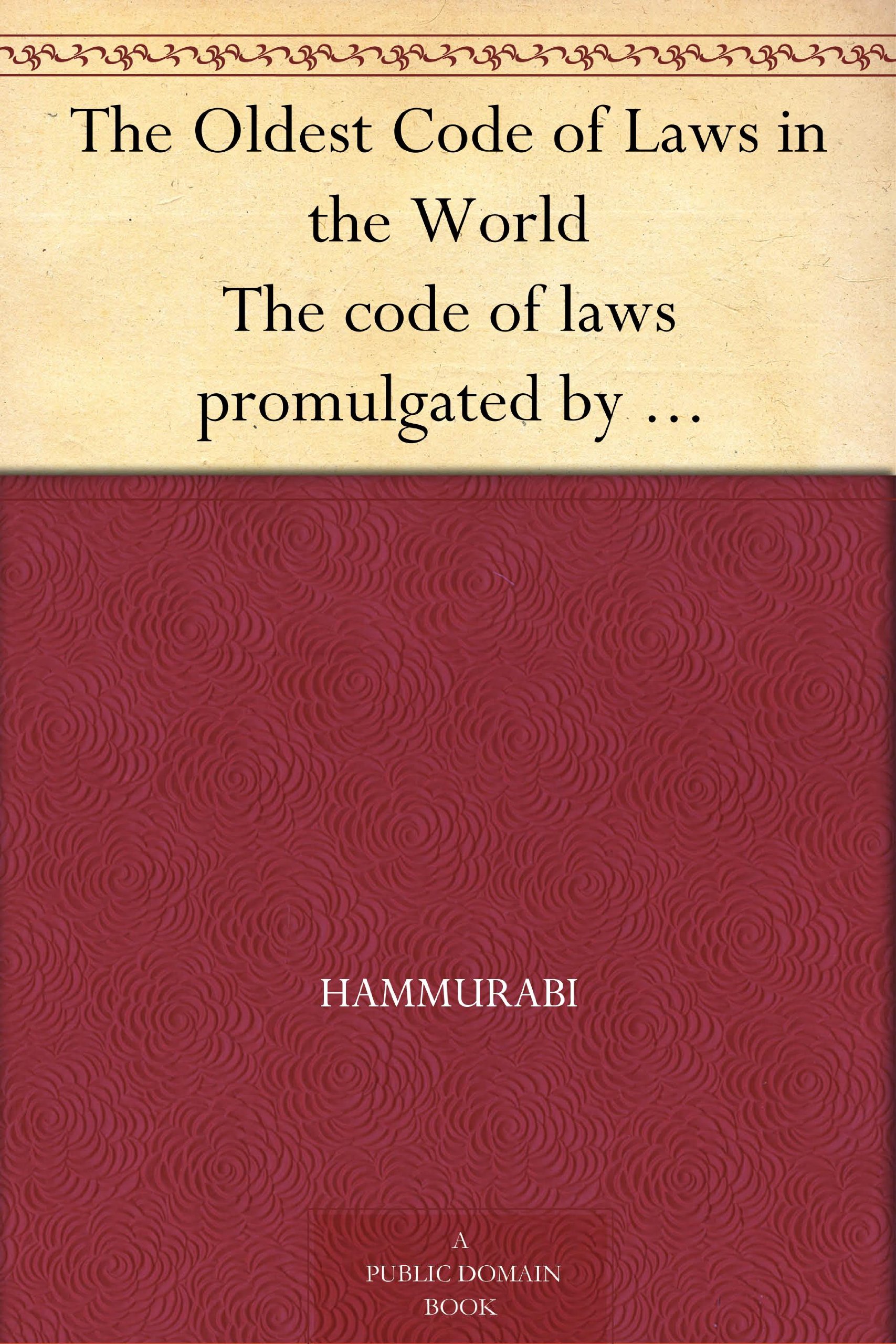 The Oldest Code of Laws in the World The code of laws promulgated by Hammurabi, King of Babylon B.C. 2285-2242