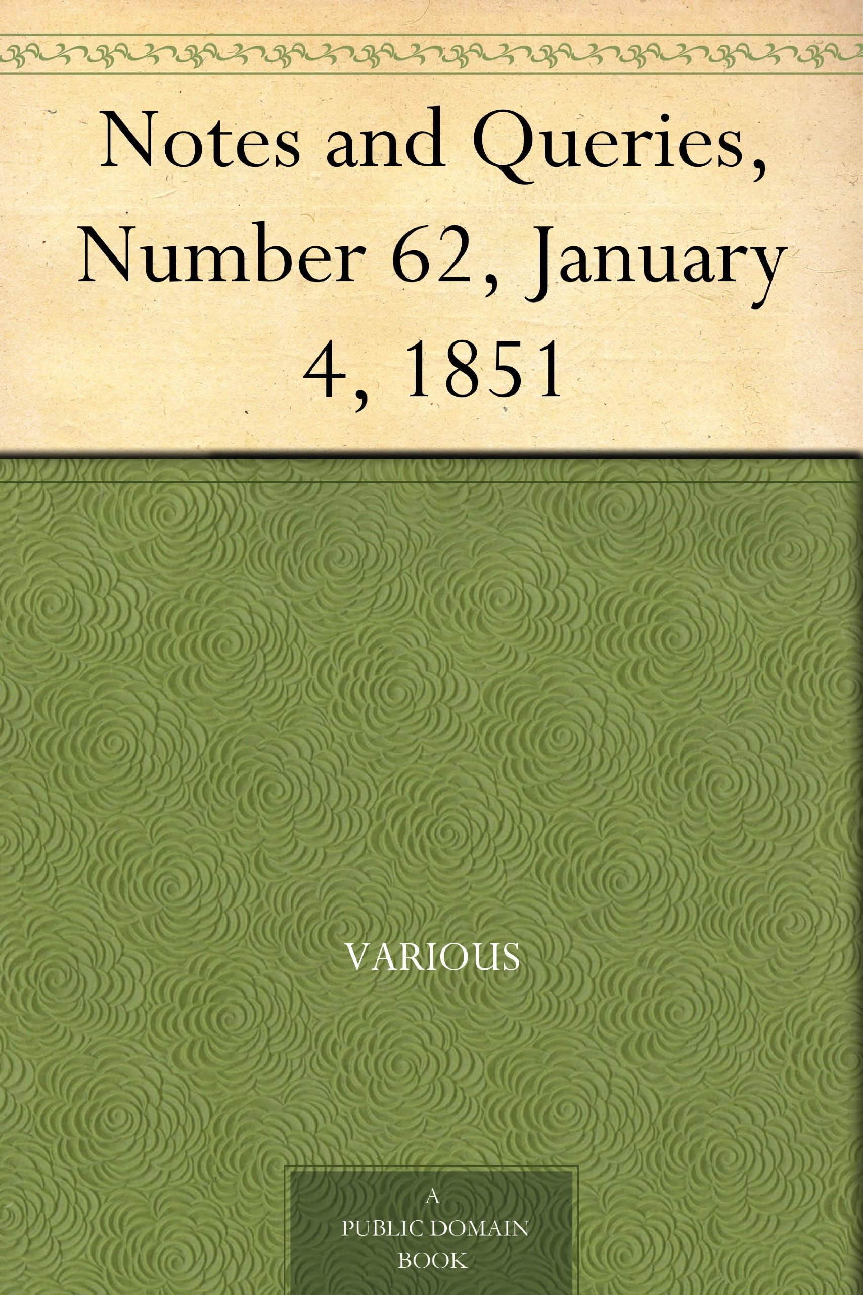 Notes and Queries, Number 62, January 4, 1851