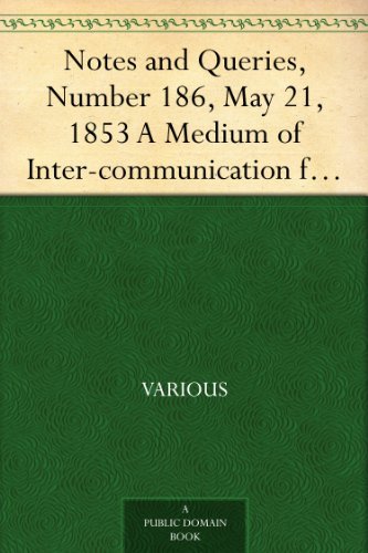 Notes and Queries, Number 186, May 21, 1853 A Medium of Inter-communication for Literary Men, Artists, Antiquaries, Genealogists, etc.
