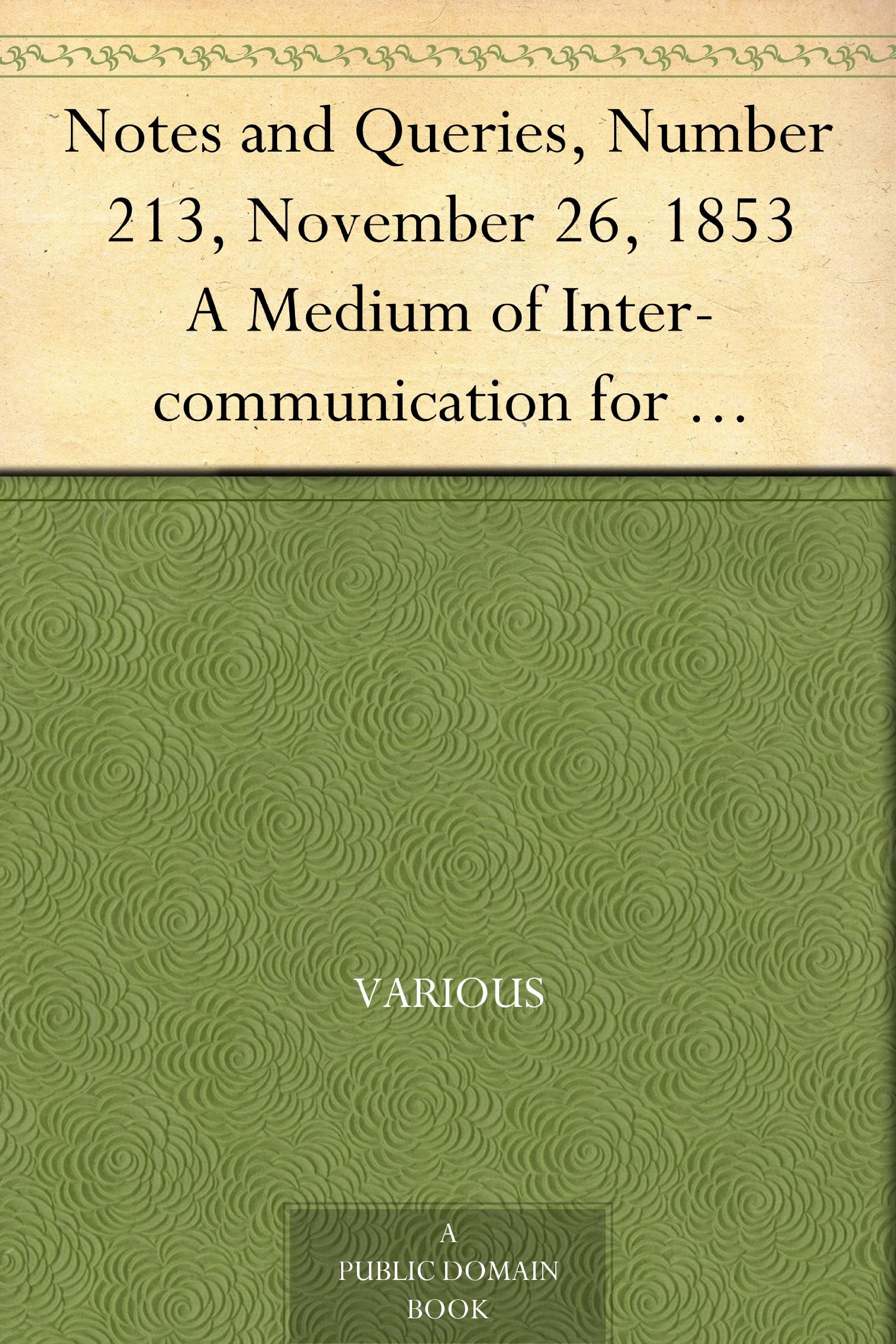 Notes and Queries, Number 213, November 26, 1853 A Medium of Inter-communication for Literary Men, Artists, Antiquaries, Genealogists, etc.